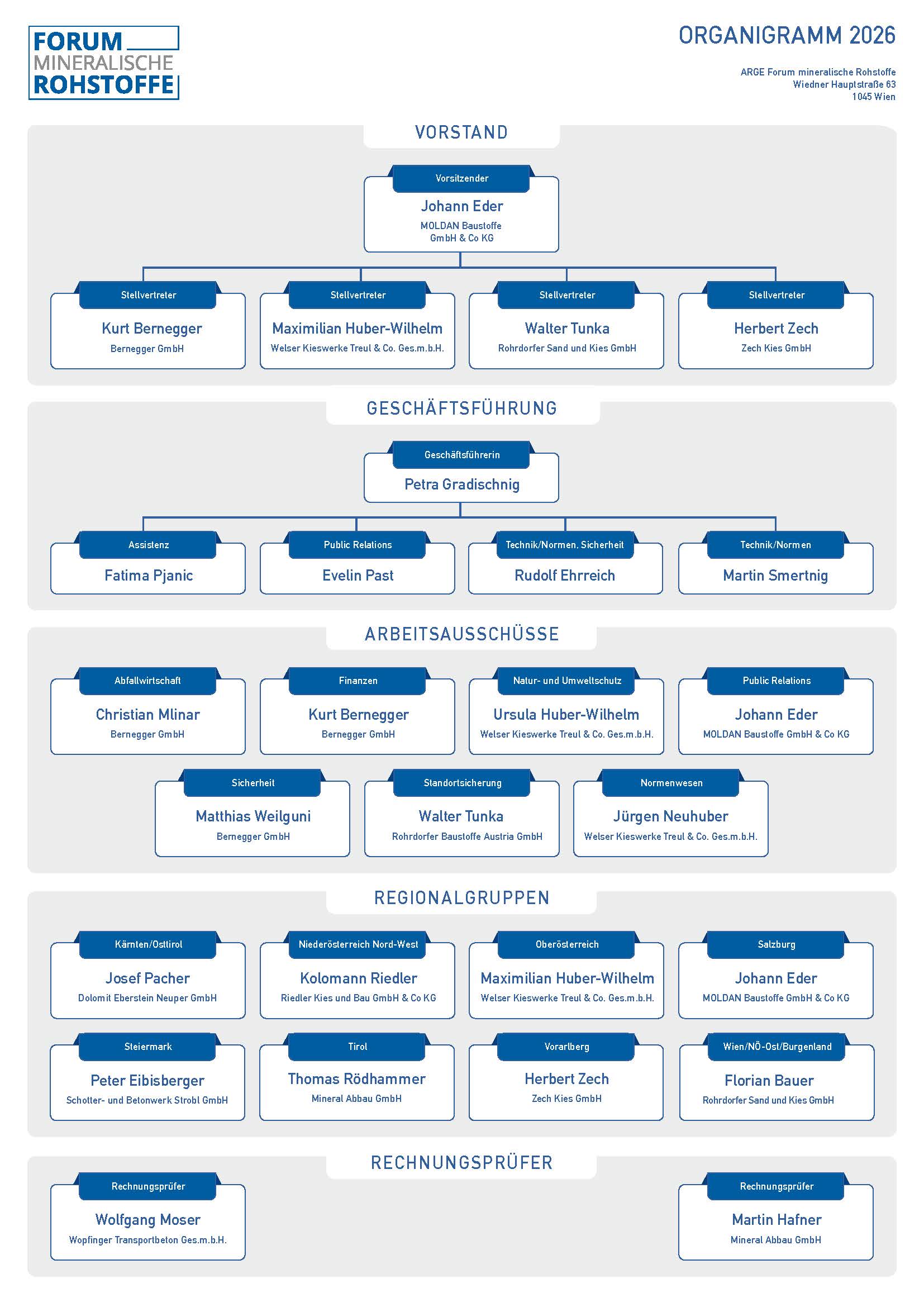 Das Forum mineralische Rohstoffe ist ein freiwilliger Zusammenschluss von Mitgliedern der Wirtschaftskammer Österreich. In dieser Arbeitsgemeinschaft werden die Interessen von über 100 mineralische Rohstoffe gewinnenden Unternehmen vertreten. Trägerorganisationen sind der Fachverband Steine-Keramik und die Bundes- und Landesinnungen der Bauhilfsgewerbe.
