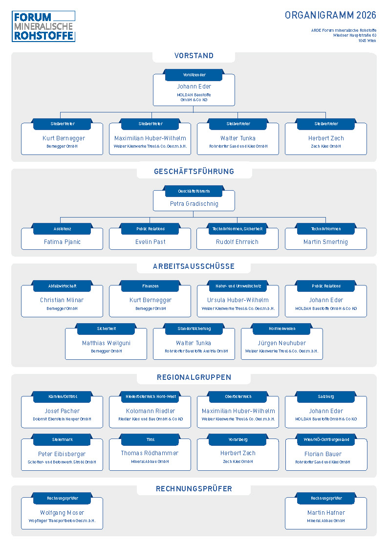 Das Forum mineralische Rohstoffe ist eine Plattform freiwilliger Mitglieder in der Wirtschaftskammer Österreich. Gemeinsam werden die Interessen von über 100 Sand, Kies und Naturstein gewinnenden Unternehmen vertreten.